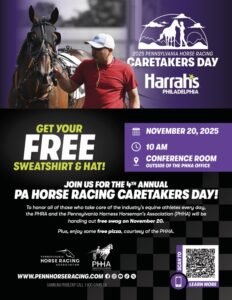 Join us for the 4th Annual Pennsylvania Horse Racing Caretakers Day on November 20, at 10am outside the PHHA office.