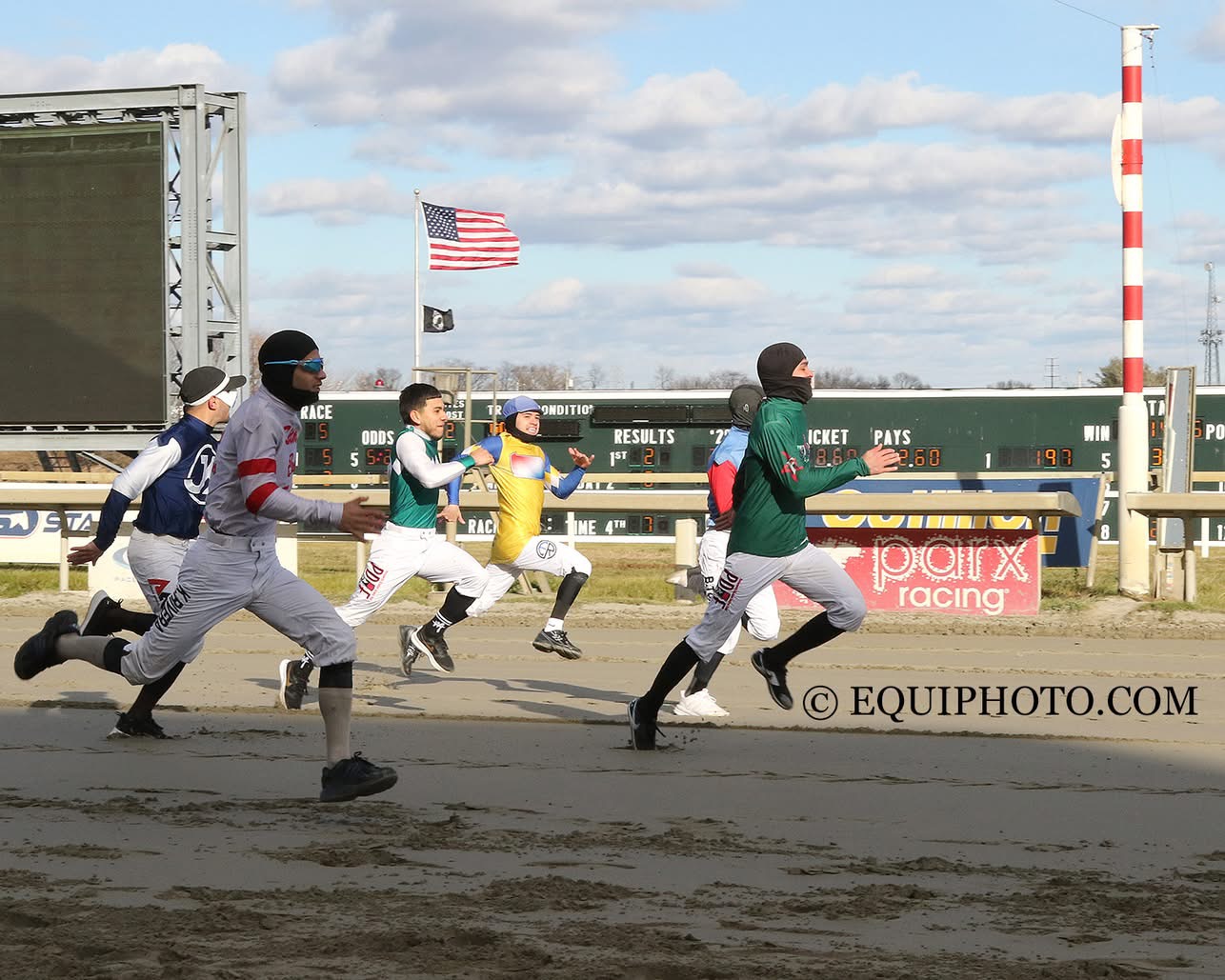 On November 28, a very different (but just as competitive) field hit the racetrack at Parx, as the jockey colony competed in a jockey foot race to raise awareness for the Permanently Disabled Jockeys Fund. Wilfred Vasquez narrowly won the photo finish, while Adam Bowman and Mychel Sanchez clipped heels, truly making it a race to go down in history.