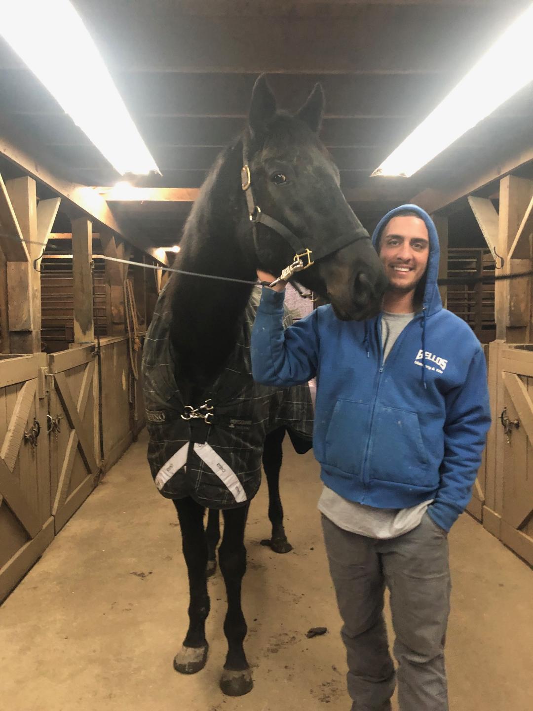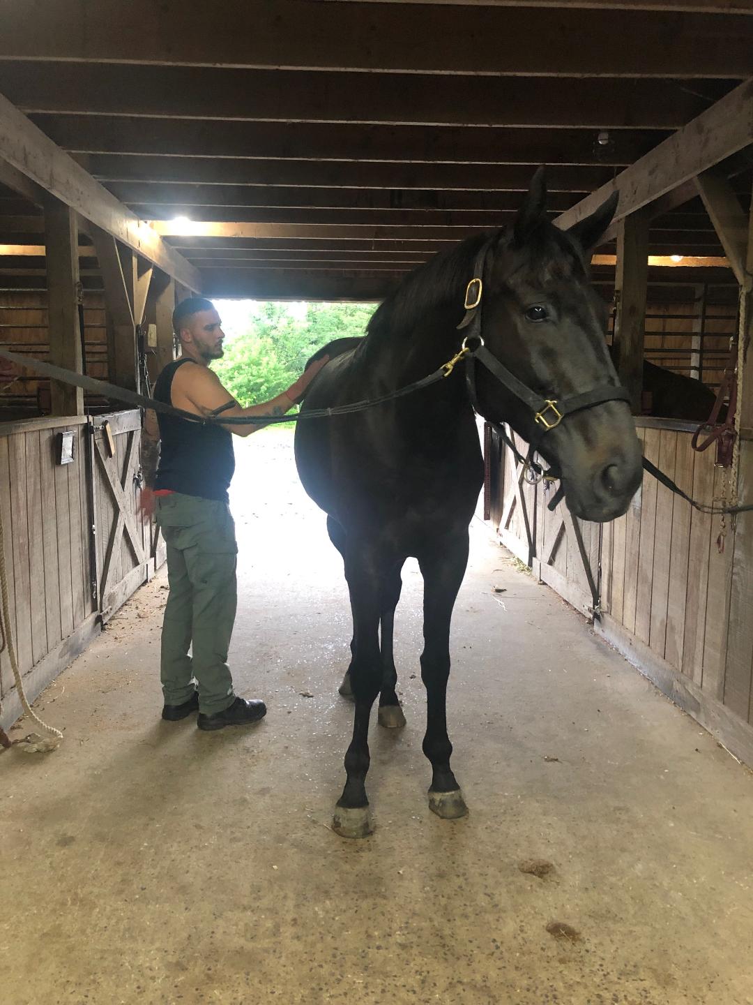 “It was a big turning point for him when he started working with the big black racehorse that I renamed Radar. The big milestone for this marine vet was when he started to groom horses and then, started to get involved with Radar,” says Goldenberg.
