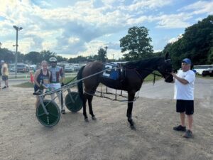 Although he’s driving in one race in the finals, it’s not one of his own. “I’m driving for Bruce Schadel!” he laughed. “I’m driving Bruce’s horse, and not driving my own. I don’t know if I probably should have told him that in advance! He’s got a trotting filly that’s a little funny. I didn’t know I wasn’t going to drive mine until the last minute. I guess I did list people when I called in, but I called in late, and was just making sure who was going to be there. I was down on Its Written, and then I saw who was available. I would have driven my other horse, (Don’t Touch My T) and let someone else drive Its Written, but I haven’t won a race with her all year, so I thought I might as well try something to spark her, and see if I can’t get something more out of her.”